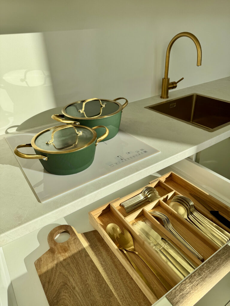 - Köögis on olemas vajalikud nõud, maitseained, kohvimasin, kuumaõhufritüür, nõudepesumasin, külmik, indukstioonpliit